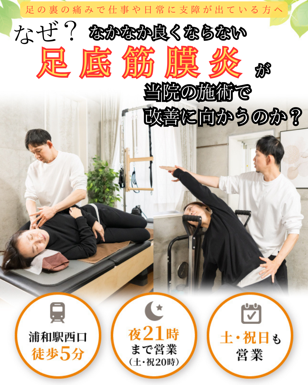 Q.足底筋膜炎と診断され病院でリハビリを受けていますがある程度は良くなりましたがそれ以上がなかなか良くなりません。対応可能でしょうか?