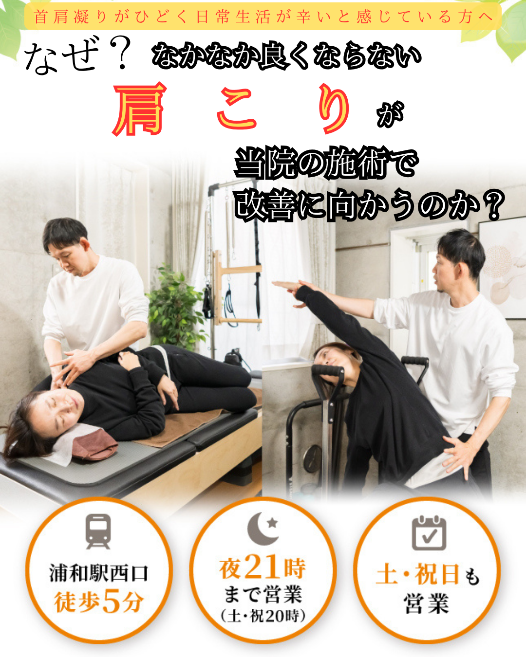 肩こりを改善するためには、その場しのぎではなく原因に対する施術が必要です。